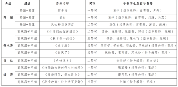 1月28日,重庆市第七届大学生艺术展演活动获奖名单公布。重庆工贸职业技术学院共获一等奖3项、二等奖4项、三等奖4项。