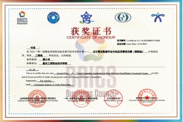 近日,2023一带一路暨金砖国家技能发展与技术创新大赛之云计算在数据平台中的应用赛项决赛(高职组)在武昌职业学院成功举办,来自全国各地的高职院校共121支代表队参加本次比赛。经过激烈角逐,我校人工智能学院学生付进、彭泰皓分别荣获该赛项二等奖、三等奖,教师谭小华荣获“优秀指导老师奖”,我校荣获“优秀组织奖”。