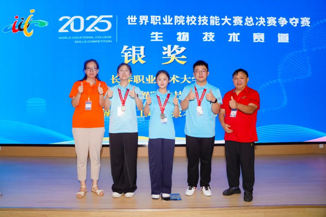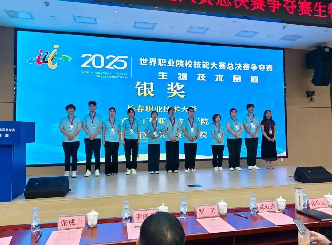 8月29日,2025年世界职业院校技能大赛总决赛争夺赛“生物技术”赛道圆满落幕。经过激烈角逐,健康学院参赛选手李冰、封雲、王炜平,在李玲玲、王梦轩、罗合春等老师的悉心指导下,凭借精湛的专业技艺与出色的综合能力,成功荣获生物技术赛道银奖。