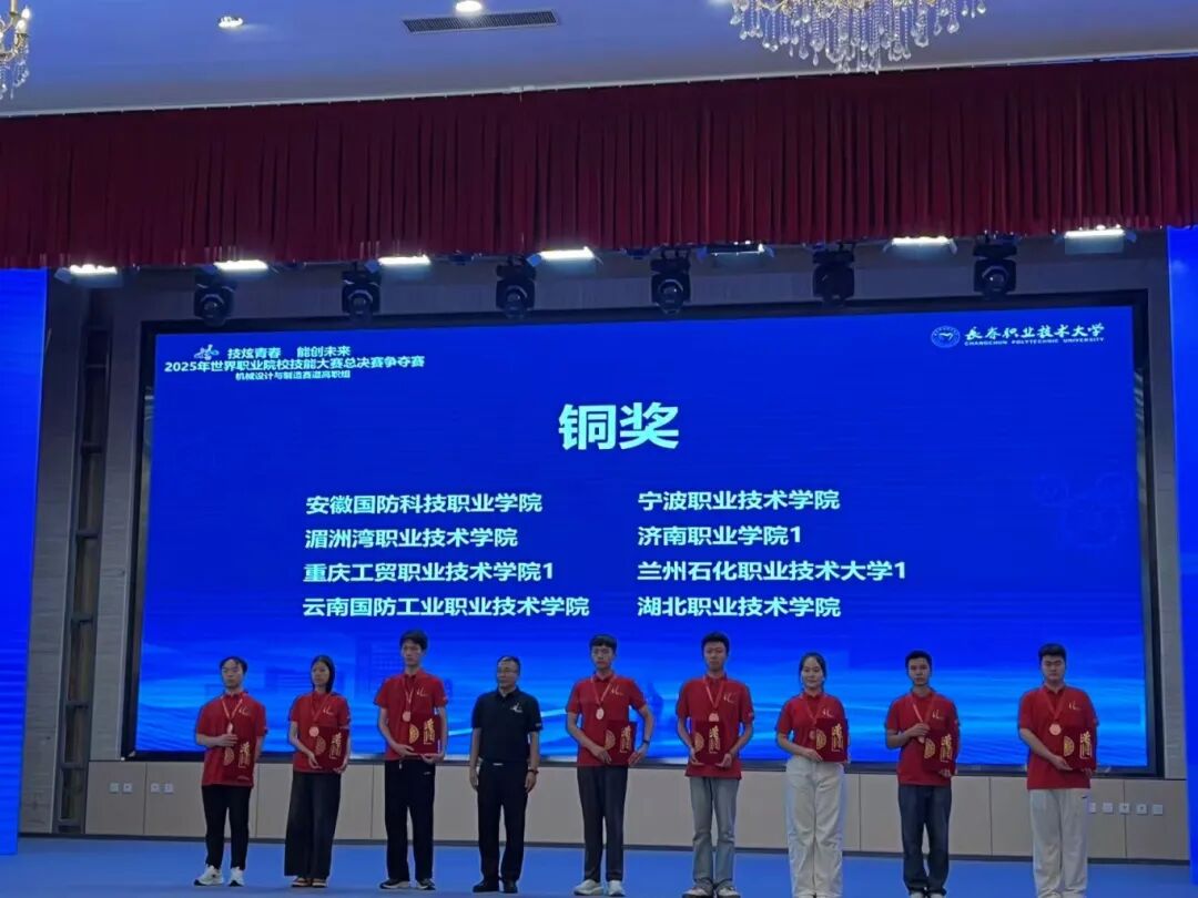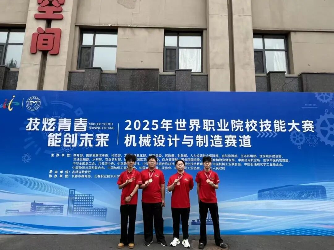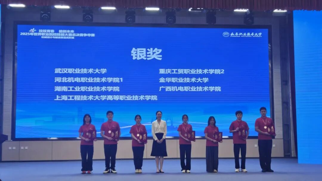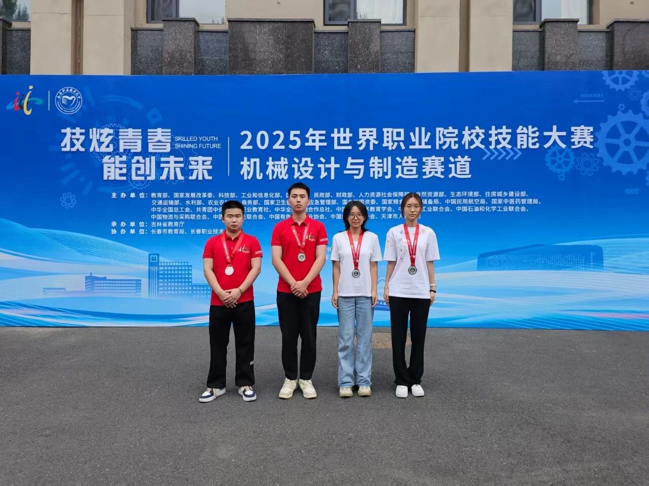 近日,2025年世界职业院校技能大赛总决赛争夺赛“机械设计与制造”赛道(高职组)在长春职业技术大学举行,来自全国各省、自治区、直辖市以及新疆生产建设兵团的158支代表队632名选手同场竞技。经过激烈角逐,由智能制造学院高攀、肖冲老师指导,石佳、王琼英、易正平、但宇豪四位同学组成的参赛团队荣获本次大赛银奖;由智能制造学院陈婕、杨泮老师指导,何淋键、周千喜、肖乾龙、肖佳宏四位同学组成的参赛团队荣获本次大赛铜奖。