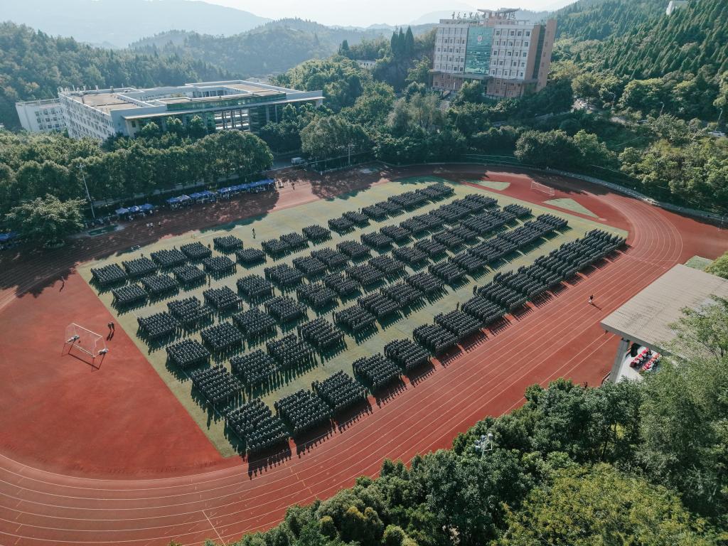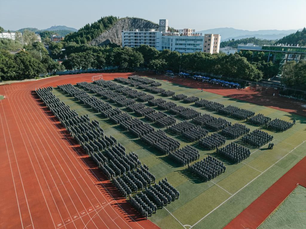 10月11日上午,重庆工贸职业技术学院2025级新生军训动员大会在学校运动场举行。