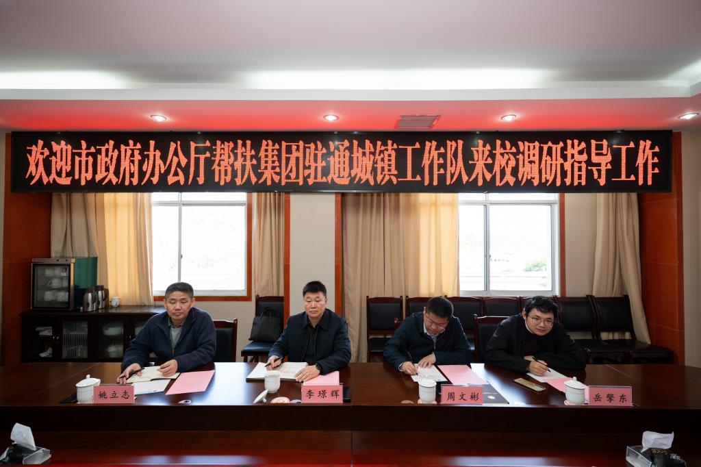 3月13日,市政府办公厅帮扶集团驻通城镇工作队队长李璟辉、副队长周文彬一行来校调研,围绕深化校地帮扶合作、助力乡村振兴高质量发展开展座谈交流。学校党委副书记、校长晏致涛、副校长赵小平出席座谈会。