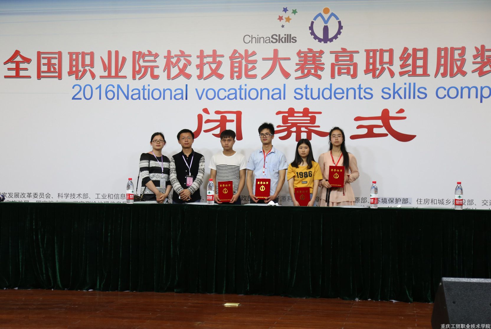 2016年5月23日,由教育部主办的全国职业院校技能大赛高职组服装设计与工艺赛项在杭州职业技术学院圆满落下帷幕。我院艺术与文化传播系李坤坤、余鸿靖、许金婷、任周群4名同学代表重庆市参加了该赛项,获得了3个二等奖和1个三等奖,其中李坤坤同学更是以0.6分的微弱差距屈居二等奖。