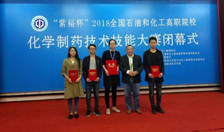 近日,“紫裕杯”2018年全国石油和化工高职院校化学制药技术技能大赛在吉林工业职业技术学院举行,来自12个省市自治区、直辖市的22家高职院校,66名选手参加了为期三天的竞赛。我院生物化学工程系2016级药品生产技术专业的程杨、李贤成和刘润鸿3名选手组成的代表队,以全国第4名的优异成绩获得了团体二等奖,罗合春和李玲玲两位教师被评为了优秀指导教师。