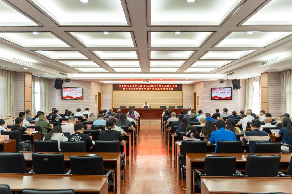 10月10日下午,学校在办公楼7楼会议室召开党委理论学习中心组(扩大)2025年第十次集体学习会议。学校党委班子成员、校领导、处科级干部参加会议。党委委员、副校长邱大伟主持会议。