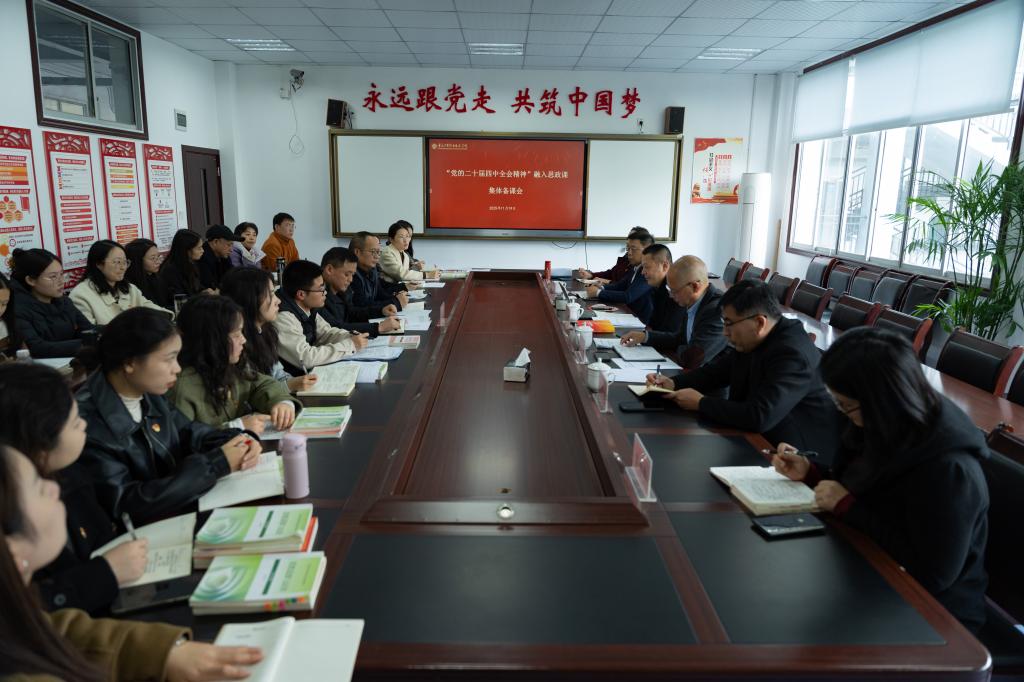 11月19日下午,学校党委在一教329室召开党委理论学习中心组(扩大)2025年第十二次集体学习会,会议聚焦全面深入学习贯彻党的二十届四中全会和中国共产党思想政治工作条例精神及习近平总书记对学校思政课建设的重要指示,旨在加强马克思主义学院和思政课建设,深化思政课程和课程思政同向同行协同育人,适应数智时代对新质生产力高技能人才的新要求,以价值塑造凝聚起学校师生强大的思政引领力,着力提高人才培养水平和立德树人质效。学校党委班子成员,党政办公室、党委组织部、党委宣传部和教务处等相关职能部门负责人、马克思主义学院(基础教育学院)党支部书记、全体思政课教师参加会议。会议由学校党委书记唐玉林主持。